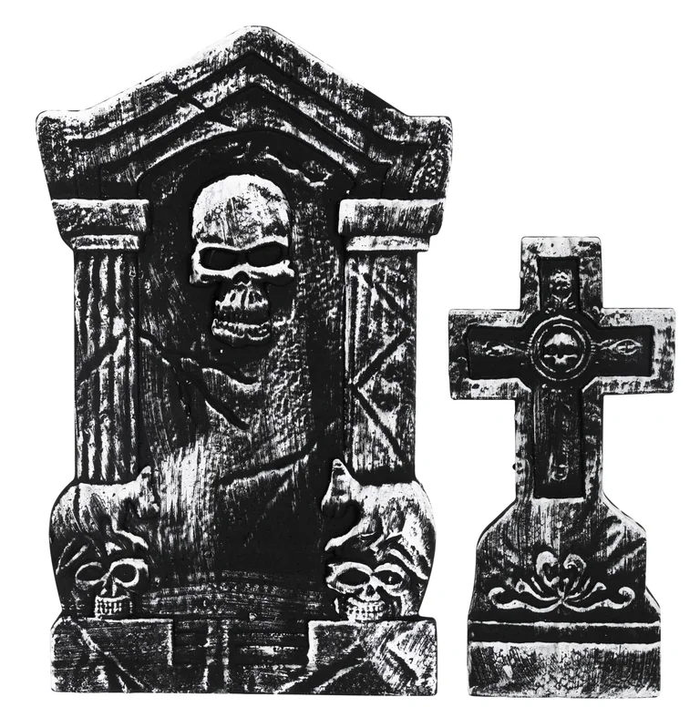 Dessa realistiska gravstenar i 2-pack skapar genast en kuslig kyrkogårdskänsla i din trädgård under Halloween. Tillverkade i väderbeständigt material som tål fukt och kyla, så du enkelt kan placera ut dem på gräsmattan, bland buskage eller längs gångstigen för maximal skräckeffekt. Perfekt för alla som vill överraska grannar och trick-or-treaters med en spännande hallowaydekor som håller säsong efter säsong.