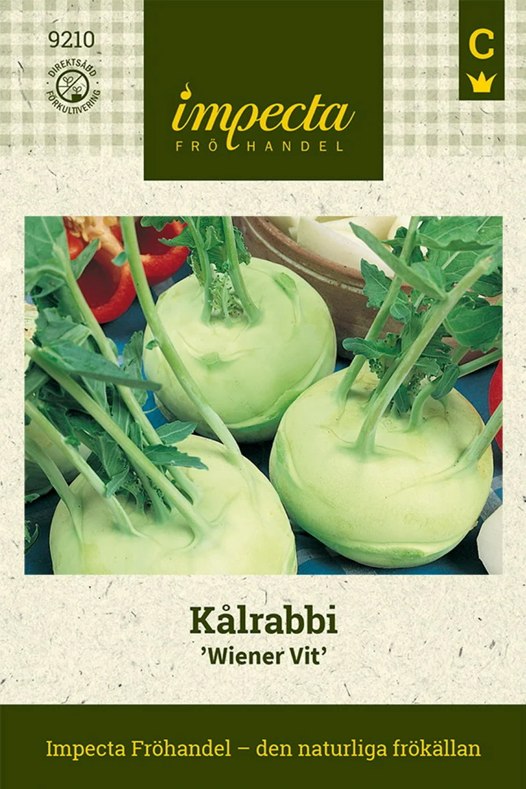 Kålrabbi Wiener Vit ger dig saftiga, vita knölar med mild, söt smak som påminner om kålrot men är mörare och nöttigare. Denna klassiska sort är perfekt för nybörjare eftersom den är lättodlad och snabbväxande - så direkt i friland från april till juli och skörda efter 8-10 veckor. Trivs utmärkt både i trädgårdslandet och i större krukor på balkongen, och de unga bladen kan också ätas som babyspenat.