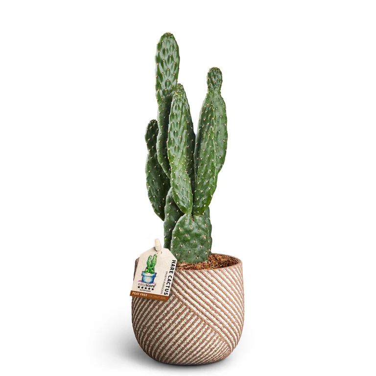 Opuntia, även kallad fikonkaktus, är en fascinerande kaktus med platta, paddliknande skott som bildar vackra gul-orange blommor och ätbara frukter. Denna tåliga växt trivs bäst i soliga lägen med väldränerad jord och kräver minimal vattning, vilket gör den perfekt för nybörjare eller de som ofta reser bort. Passar utmärkt som krukväxt på balkonger och terrasser, och kan även odlas utomhus året runt i skyddade lägen i södra Sverige.