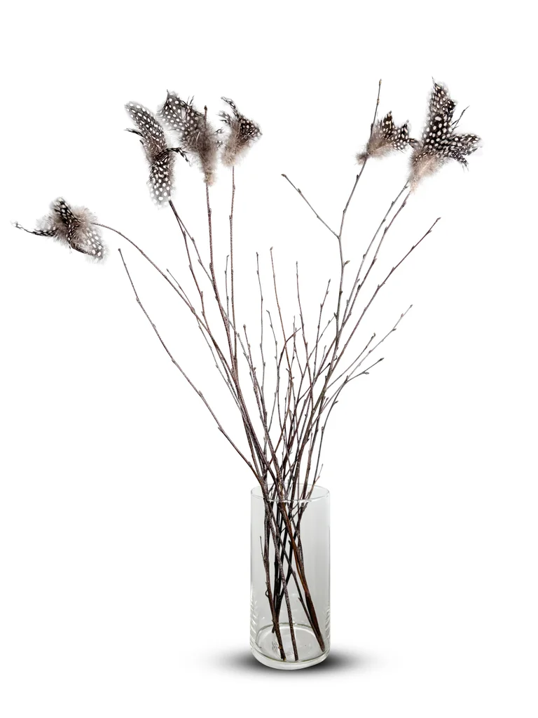 Påskris med fjädrar naturfärgade