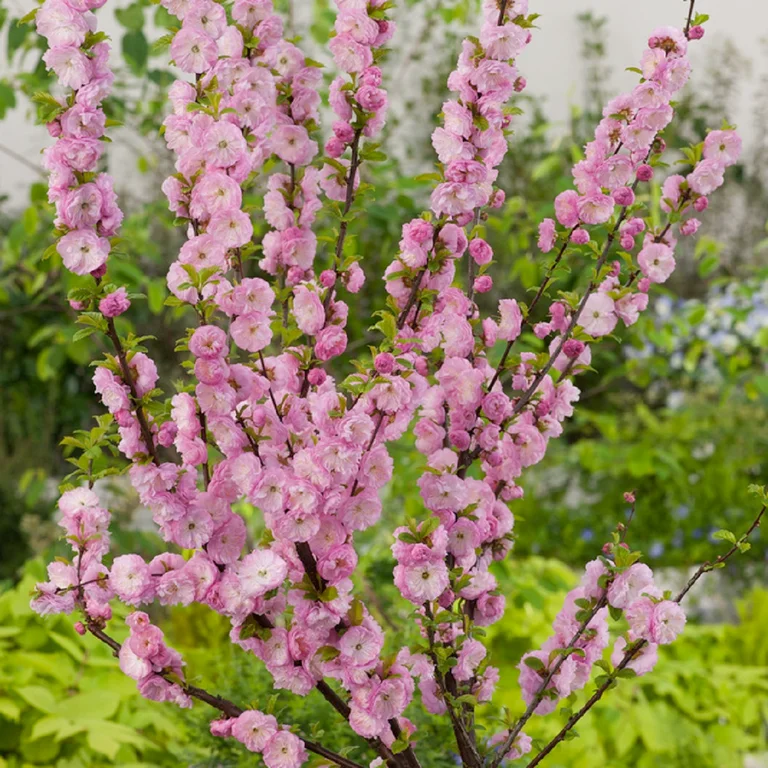 Rosenmandel på stam är ett vackert prydnadsträd som blommar överdådigt med rosa blommor på våren och ger små, ätbara mandlar på hösten. Trädet trivs bäst i soligt läge med väldränerad jord och är perfekt som solitärträd i större trädgårdar eller som blickfång på gården. Den passar både nybörjare och erfarna odlare då den är relativt lättskött, men kräver god vinterskydd i kallare delar av Sverige.