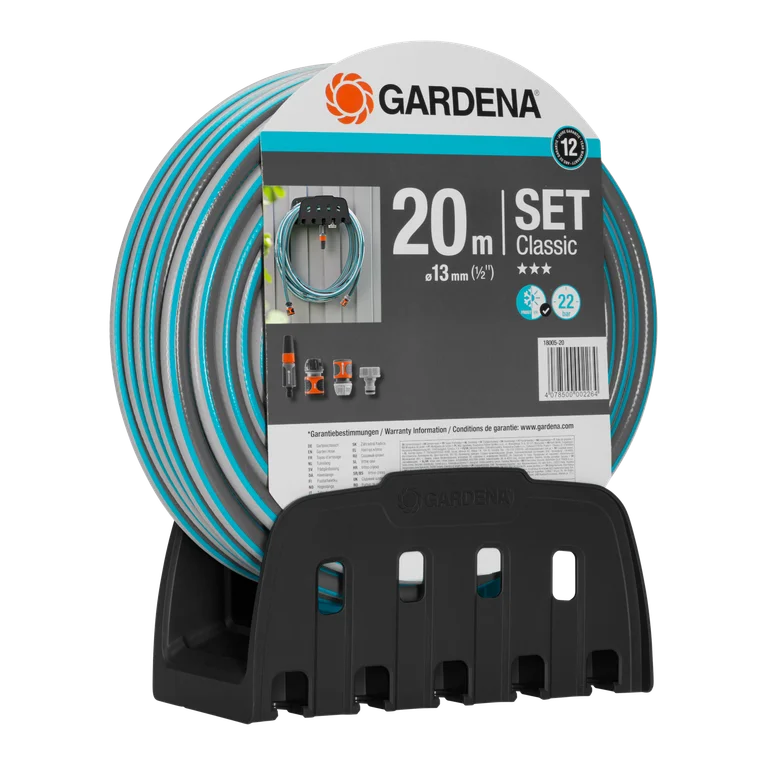 Slanghållare för vägg med slang och startkit