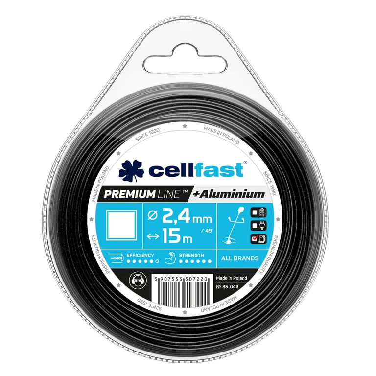 Trimmertråd 2,4 mm x 15 m firkantet Premium